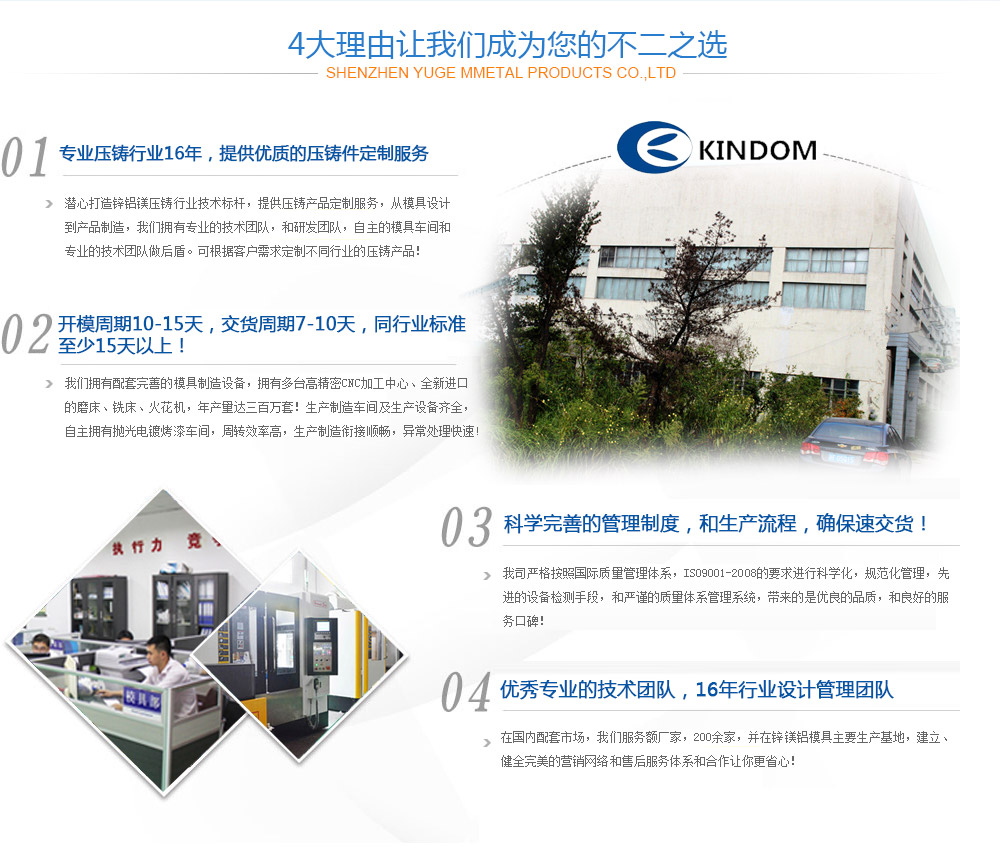 海寧長(zhǎng)命摩擦材料有限公司,創(chuàng)建于2002年,是一家集模具設(shè)計(jì)、制造、鋁合金、鋅合金壓鑄、沖壓加工、表面處理為一體的專(zhuān)業(yè)制造公司,為汽車(chē)、摩托車(chē)、沙灘車(chē)、燈具、網(wǎng)絡(luò)天線、監(jiān)控設(shè)備等行業(yè)提供精密壓鑄件及精密沖壓件。